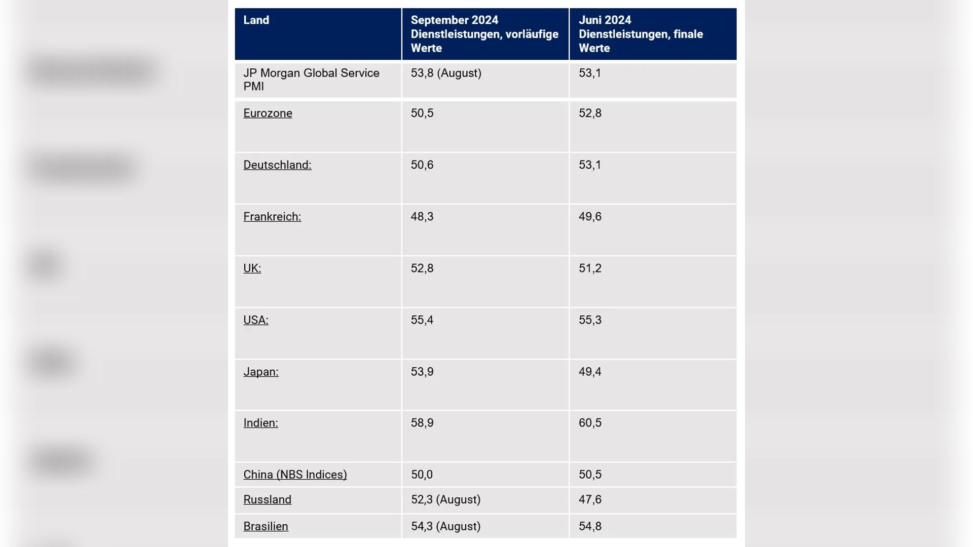 Der Dienstleistungssektor der Eurozone verlor im 3. Quartal an Dynamik. Die USA verzeichneten weiter eine starke Dynamik. Großbritannien und Japan gewannen an Momentum. Russland verzeichnete eine Trendumkehr zu Wachstum. Indien hält weiter den Spitzenplatz, Brasilien knapp das respektable Niveau. China verliert an Momentum.