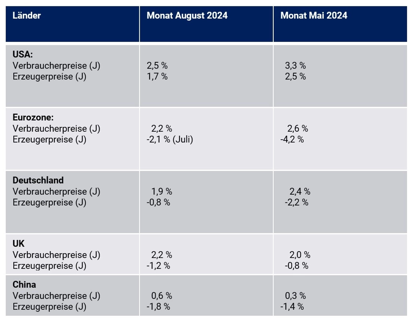 An den Finanzmärkten ergab sich im Sommerquartal nach dem kurzfristigen Einbruch Anfang August eine ausgeprägte Risikobereitschaft. Entscheidende Faktoren waren die rückläufigen Inflationsentwicklungen in Europa und den USA, die zu Zinssenkungen und Zinssenkungserwartungen führten. Weder das konjunkturelle Umfeld noch die geopolitische Lage lieferten entscheidende positive Impulse.